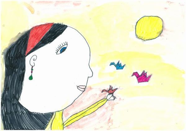 ANTの絵本「おりづるの旅」ロシア語版の翻訳をサポートしてくださった新荘さんの仲介で、東欧ベラルーシのミンスク市立第5児童図書館内「日本文化情報センター」(代表・辰巳雅子さん)のもとへ、「おりづるの旅」が届けられました。その後、辰巳さんが、ミンスク市内の絵画教室「ハーモニー」(エレーナ・ブラト先生)へ絵本を持ち込んでくださり、絵画教室に通うベラルーシの子どもたちが、初めて、さだこの絵本と出会いました。